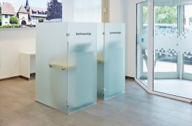 Diese Elemente schützen die Privatsphäre ihrer Kunden und steigern somit das Sicherheitsgefühl des Kunden während einer Transaktion. Es ist folglich ein Sichtschutz vor unerwünschten Blicken bei dem Tätigen von Überweisungen oder dem Geld abheben. Die Diskretionselemente sind als Wandbefestigung neben installierten Selbstbedienungsterminals oder Kontoauszugdruckern nachrüstbar und in verschiedensten Variationen erhältlich. So gibt es diese z.B. aus satiniertem VSG-Sicherheitsglas oder Weißglas mit Ätzsatinierung. Die Diskretionselemente sind an ihre individuellen Wünsche anpassbar.